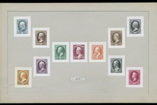 steel-engraved set of 11; very first American commemorative stamps.