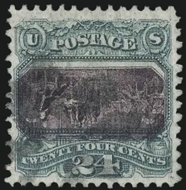 The 24¢ 1869 Pictorial INVERTED CENTER depicts in just 3/8" x 5/8" 23 Founders (nine with faces) presenting a